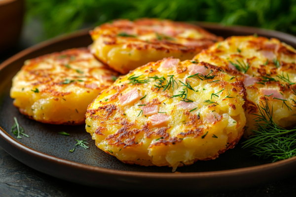 Готовим прекрасную альтернативу омлету и сложным лепешкам с начинками — яичные оладьи с сыром и ветчиной. Они получаются плотными, но не резиновыми, с хрустящей золотистой корочкой и нежной, сочной текстурой внутри.
