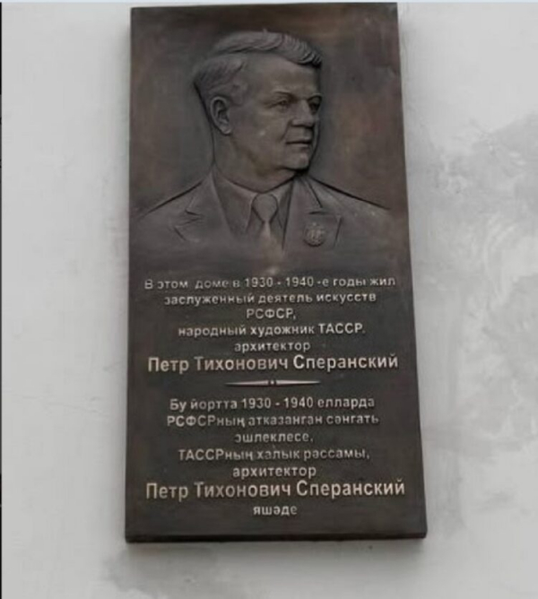 На фасаде дома № 54 по улице К. Маркса, где жил заслуженный деятель искусств РСФСР, народный художник ТАССР и архитектор Пётр Тихонович Сперанский, установили мемориальную доску.