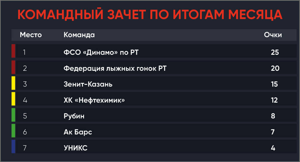 Напомним, что победители голосования в командном и личном зачёте получают по 10 очков в общий зачёт. По итогам января вы также можете оставить свой голос на сайте «Татар-информа» и в телеграм-канале «ТИ-Спорта».