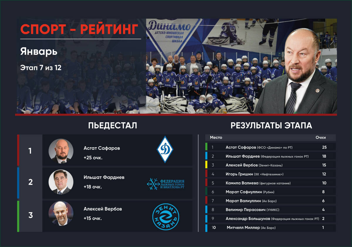 Все вышеизложенное и обеспечило победу Асгата Сафарова в Спортрейтинге Татарстана за январь. Это 25 очков для Сафарова и ФСО «Динамо» по РТ.