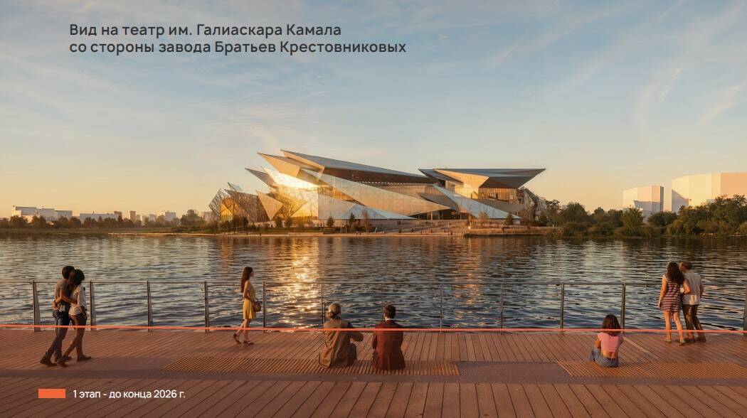 Пространство спроектируют так, чтобы отсюда открывался лучший вид на новое здание театра имени Г. Камала. Во время городских мероприятий настил сможет вместить большое число людей и станет своеобразной «трибуной», а в обычные дни будет использоваться как прогулочная зона.