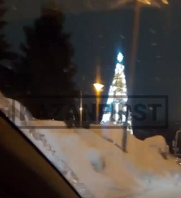 На улице Тинчурина в Казани продолжает стоять новогодняя елка. По вечерам на ней все ещё зажигают огни.