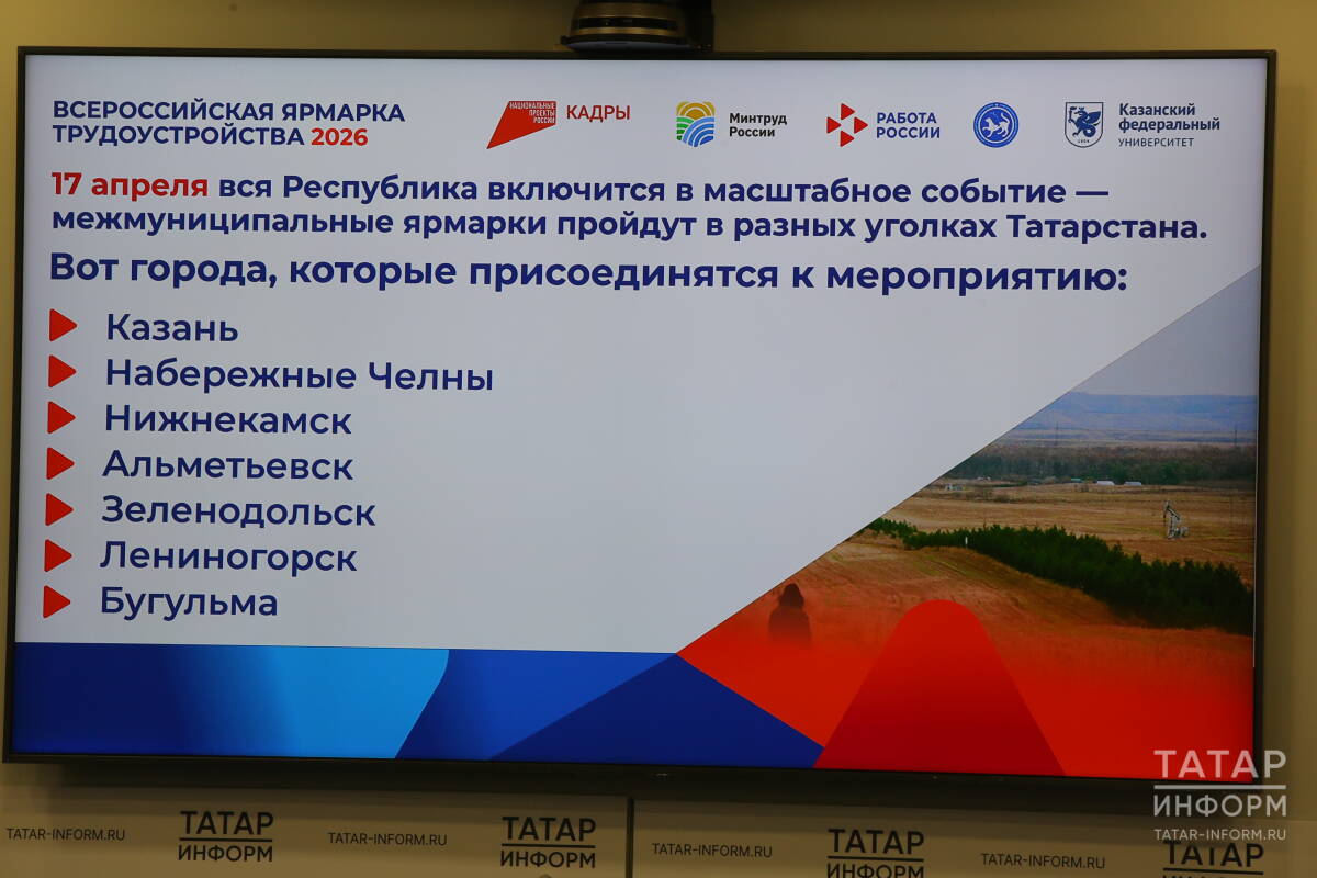 17 апреля в каждом кадровом центре республики и в каждом досуговом центре муниципальных образований будет проходить региональный этап Всероссийской ярмарки трудоустройства. Ключевые площадки будут работать в Казани, Набережных Челнах, Нижнекамске, Альметьевске, Зеленодольске, Елабуге и Бугульме.