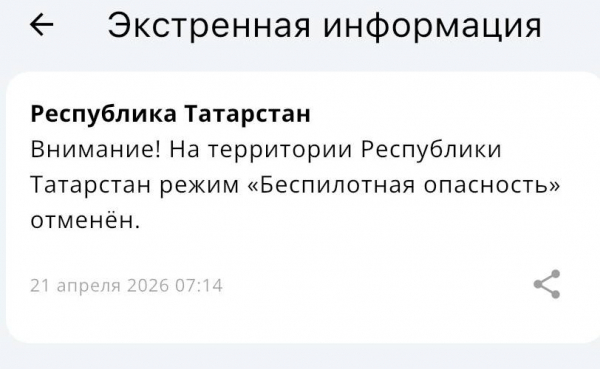 В Татарстане снят режим беспилотной опасности 21/04/2026 – Новости