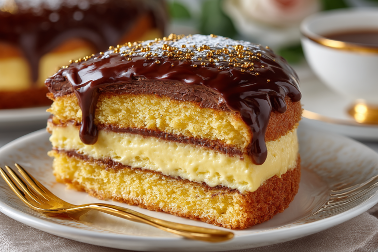 Этот «умный» пирог — гениальное изобретение для тех, кто любит впечатляющие десерты без лишних хлопот. Его главный секрет в волшебной трансформации: часть жидкого теста, вылитая на только что испеченный горячий корж, сама растекается в идеальную, блестящую шоколадную глазурь. Получается невероятно красивый и вкусный десерт: очень влажный, нежный и пористый шоколадный корж, который буквально тает во рту, покрытый тонким, слегка хрустящим слоем насыщенной какао-глазури.